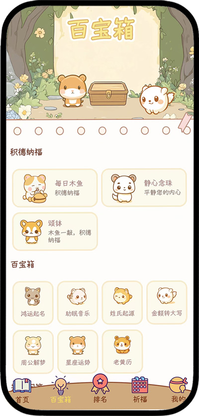 悠悠日常为您提供电子木鱼,静心念珠,颂钵,起名,解梦等多种日常常见服务,通过丰富的功能,带来便利的使用体验